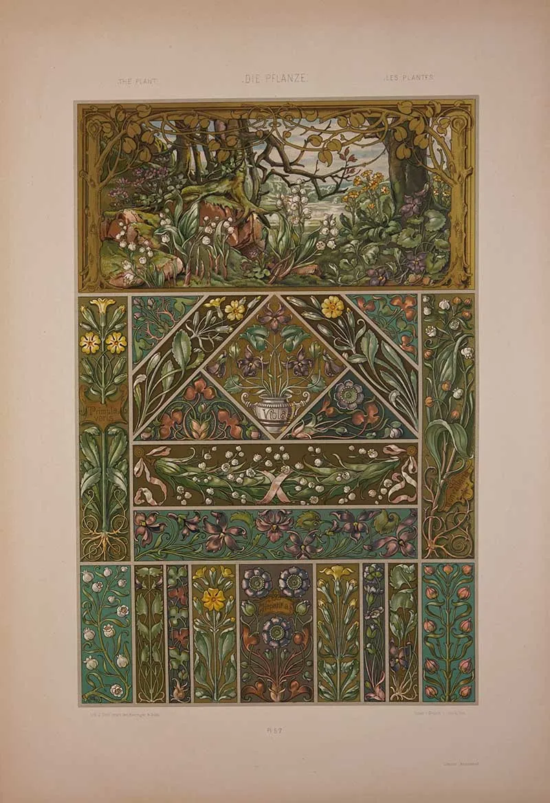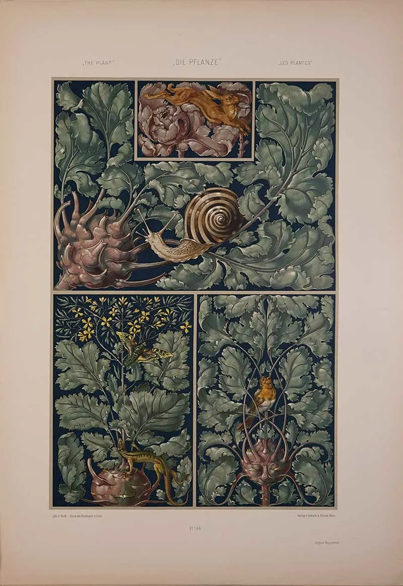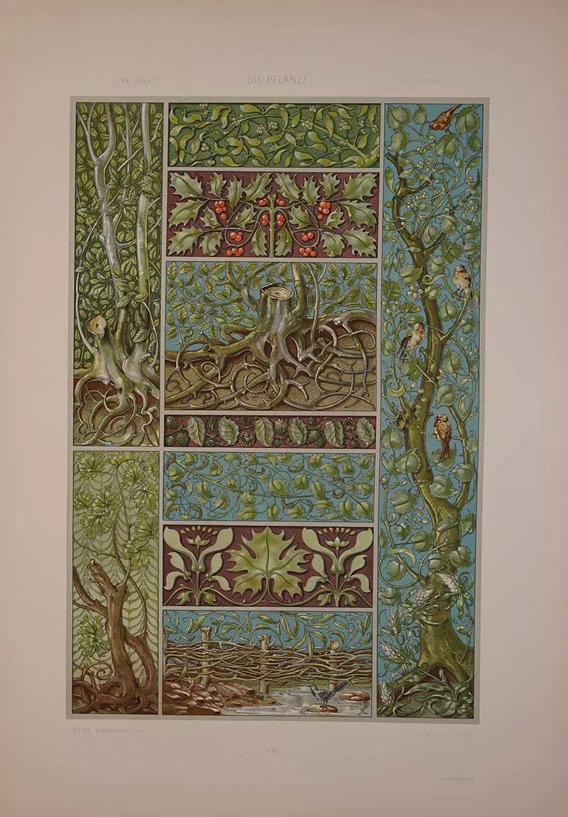 Gerlach’s book influenced the Arts and Crafts movement, particularly the work of William Morris. Its emphasis on the beauty and symbolic significance of plant motifs in art and applied arts resonated deeply with the movement’s ideals of celebrating nature, beauty, and craftsmanship.