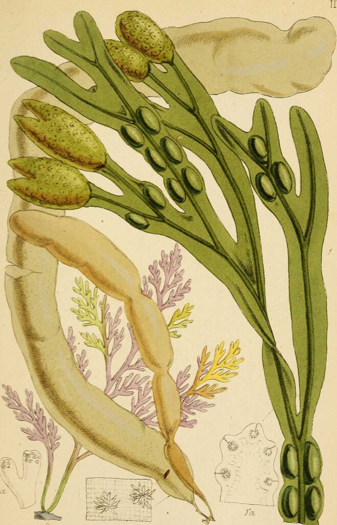 All these lovely illustrations are from the same book, “British sea-weeds: an introduction to the study of the marine algae of Great Britain, Ireland and the Channel Islands“, by Samuel Octavus Gray, published in 1867.