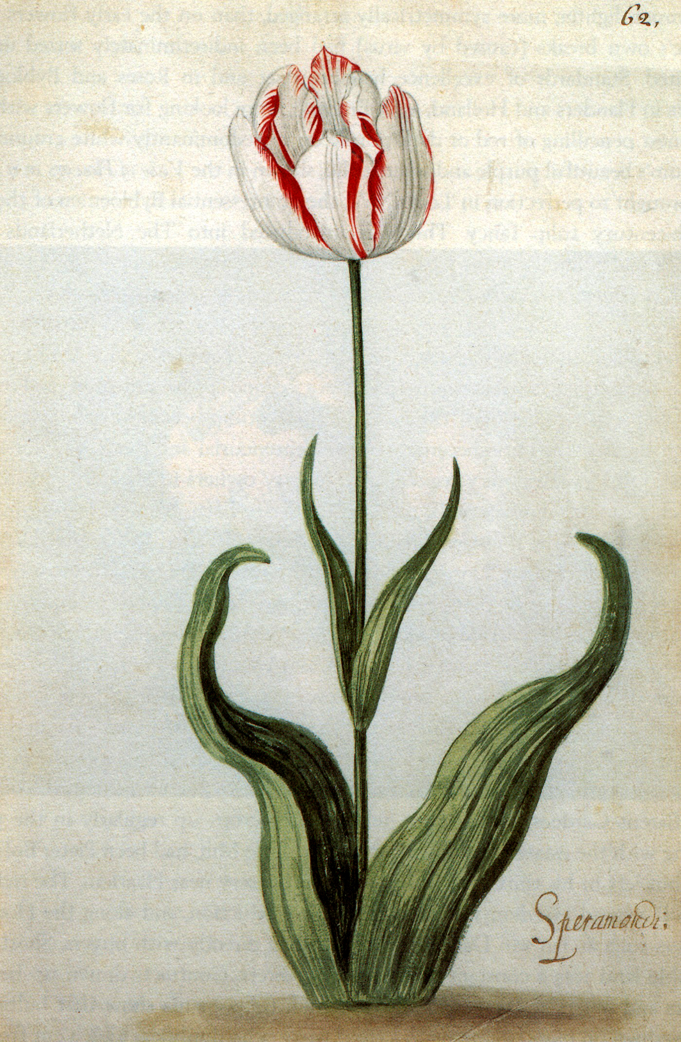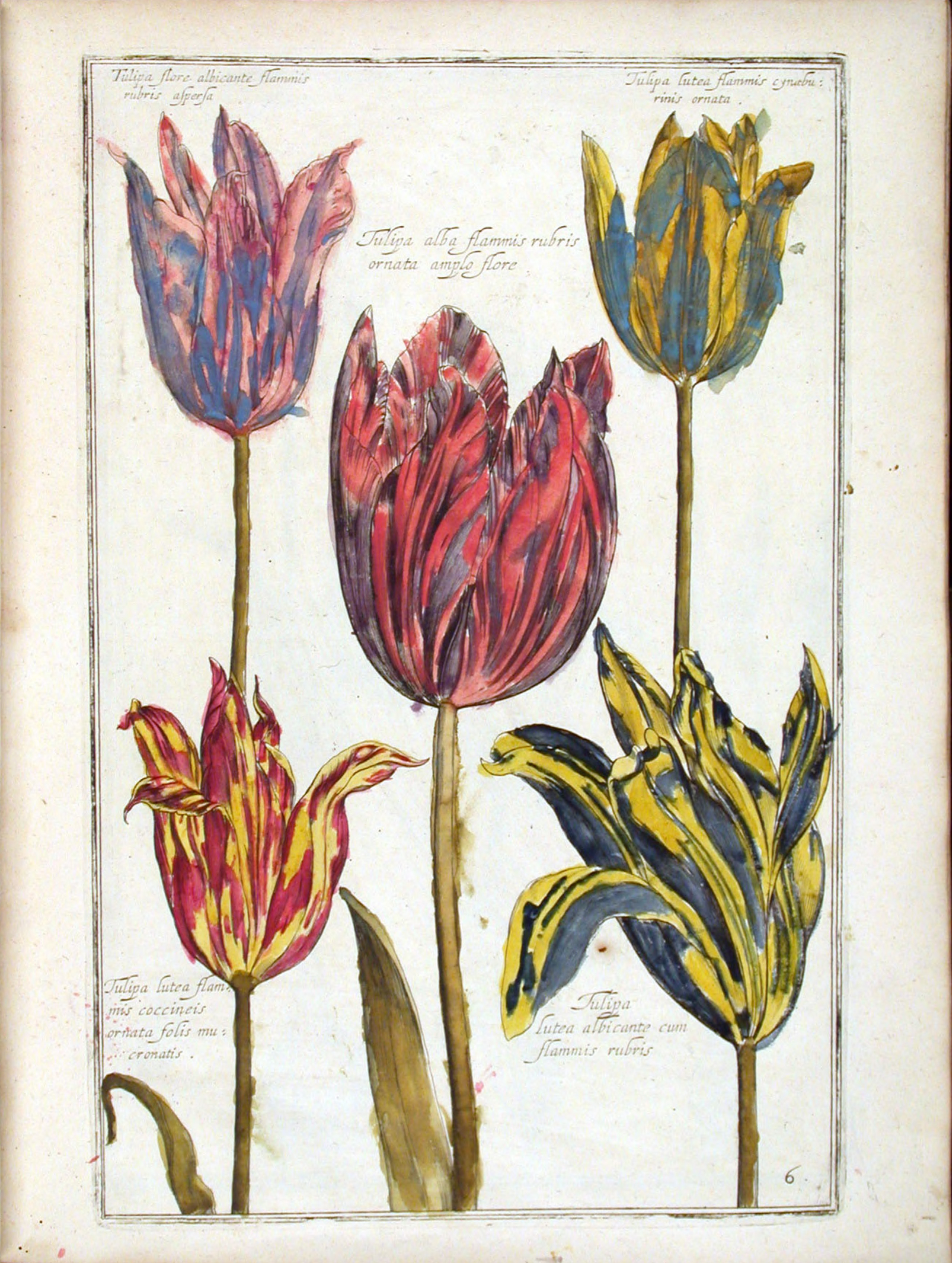 These colourful tulips are to be found in the “Theatrum Florae” by Daneil Rabel where you will find more Renaissance paintings of tulips and other flowers.
