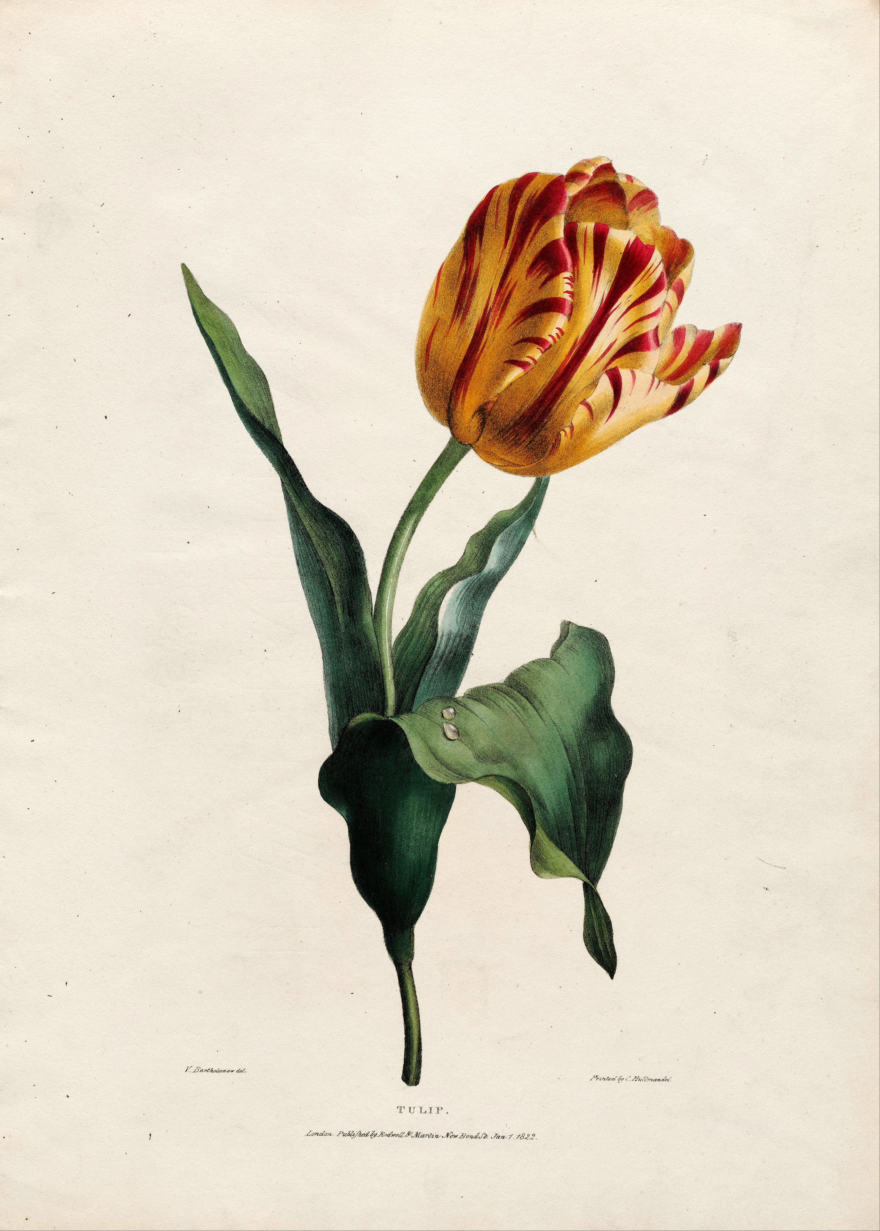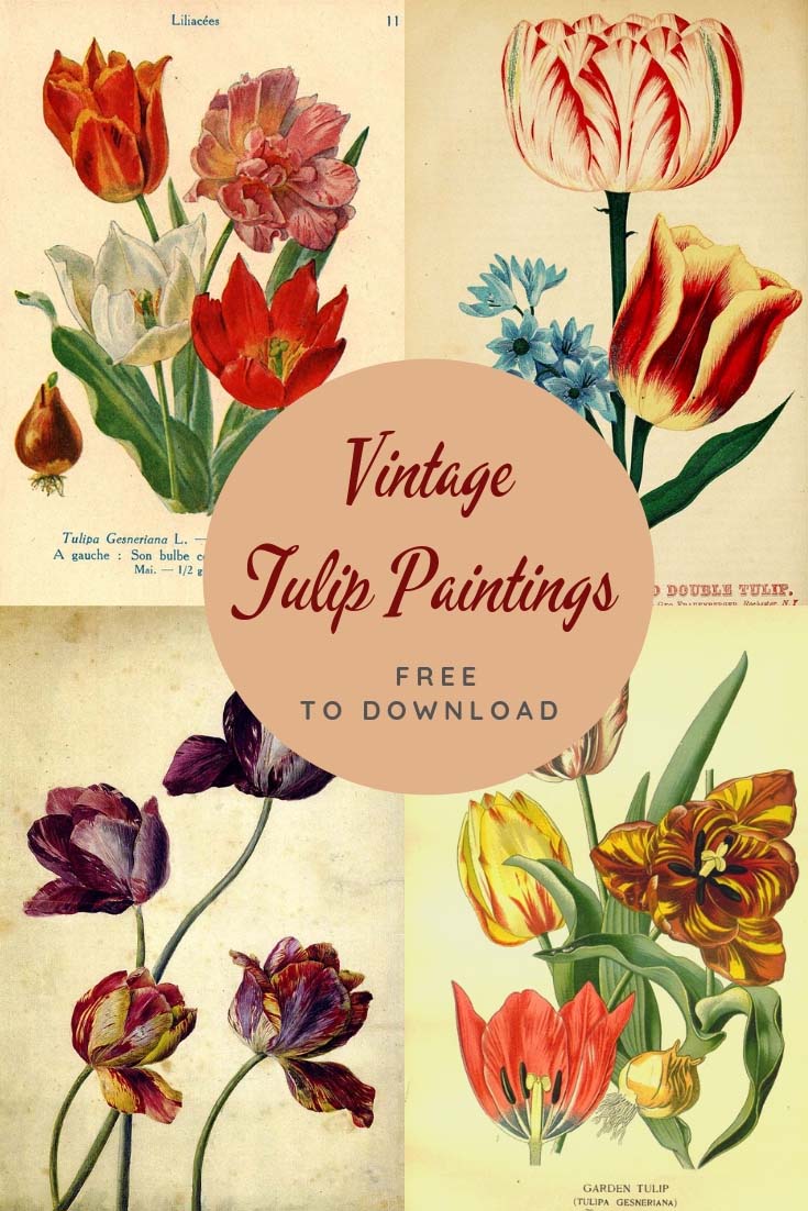 Here I have curated a collection of copyright free tulip paintings and botanical illustrations that are free to print.