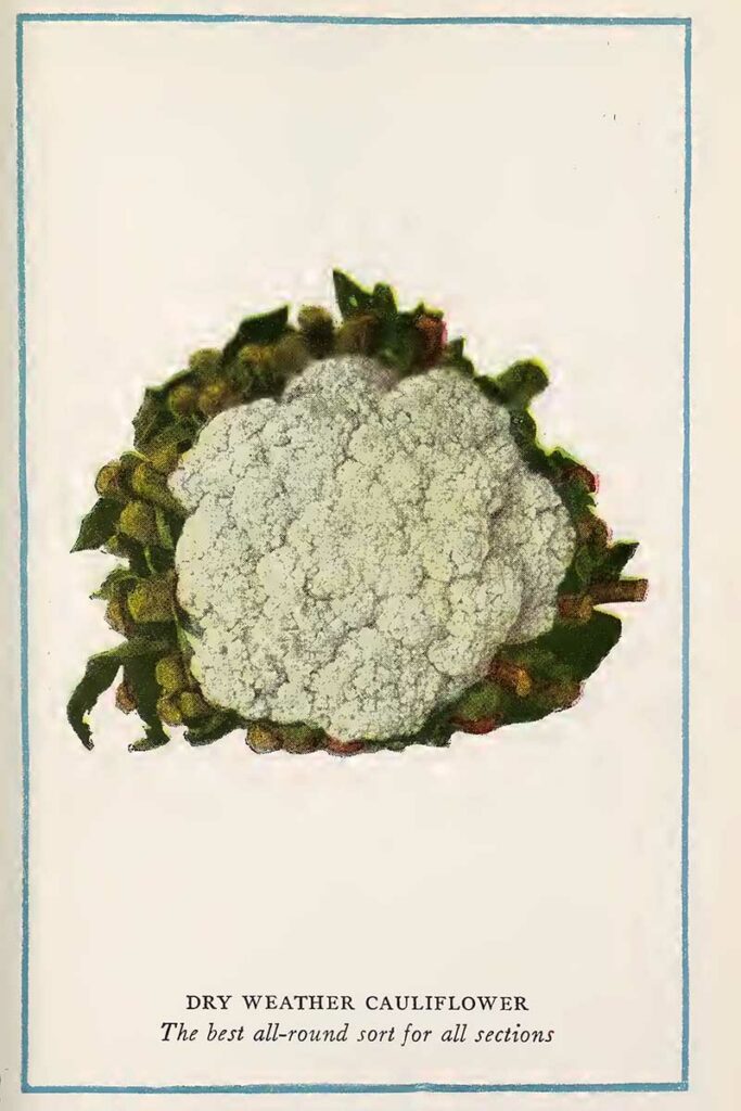 “Italians are said to have “discovered” cauliflower as a food plant. Dutch gardeners improved it, Danish gardeners perfected it, and to this day the finest cauliflower seeds come from Denmark because the climate of that country is nearly ideal for the development of this vegetable.
