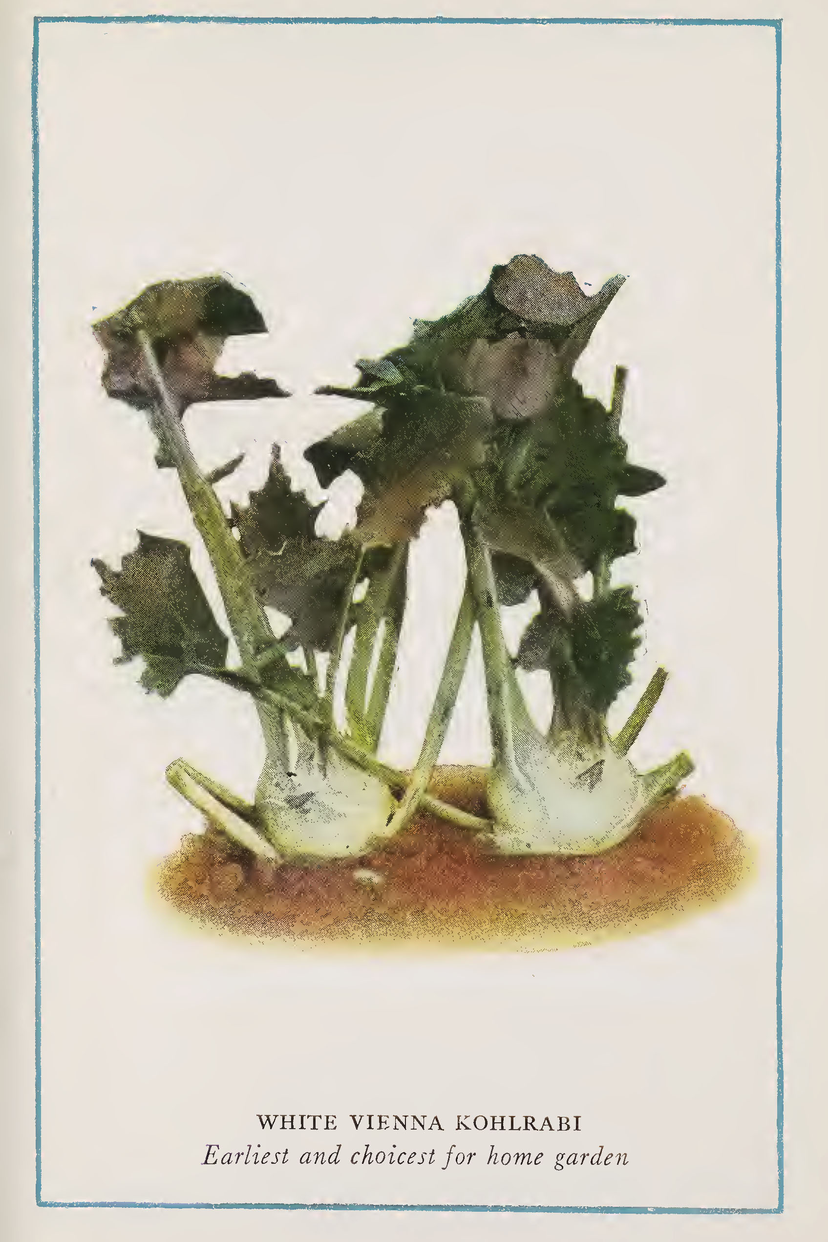“A most delicious member of the cabbage family grown for the fleshy portion of its stem which re- sembles a turnip-shaped root and forms on top of the ground. The general appearance of the young plant is that of a cabbage.
