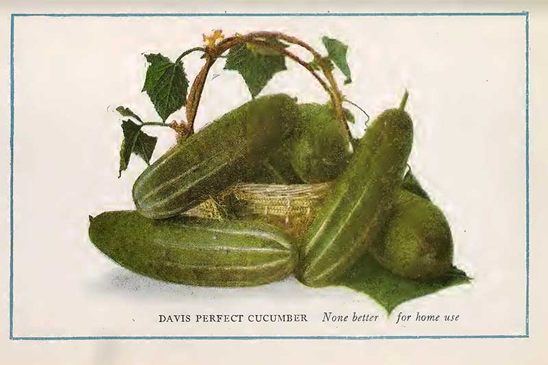 Cucumbers are a very easily grown vegetable. They require little or no care after the seedlings have outgrown the danger of being eaten by the little striped beetles which seem to prefer young cucumber seedlings to all other food.”