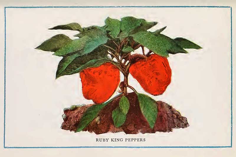 “Among these, we find two distinct types — the small ones largely used for seasoning and flavoring, and the larger ones, used for stuffing, as “mangoes.” The large kinds are descendants of a species from East India, while the smaller varieties originated in tropical South America.