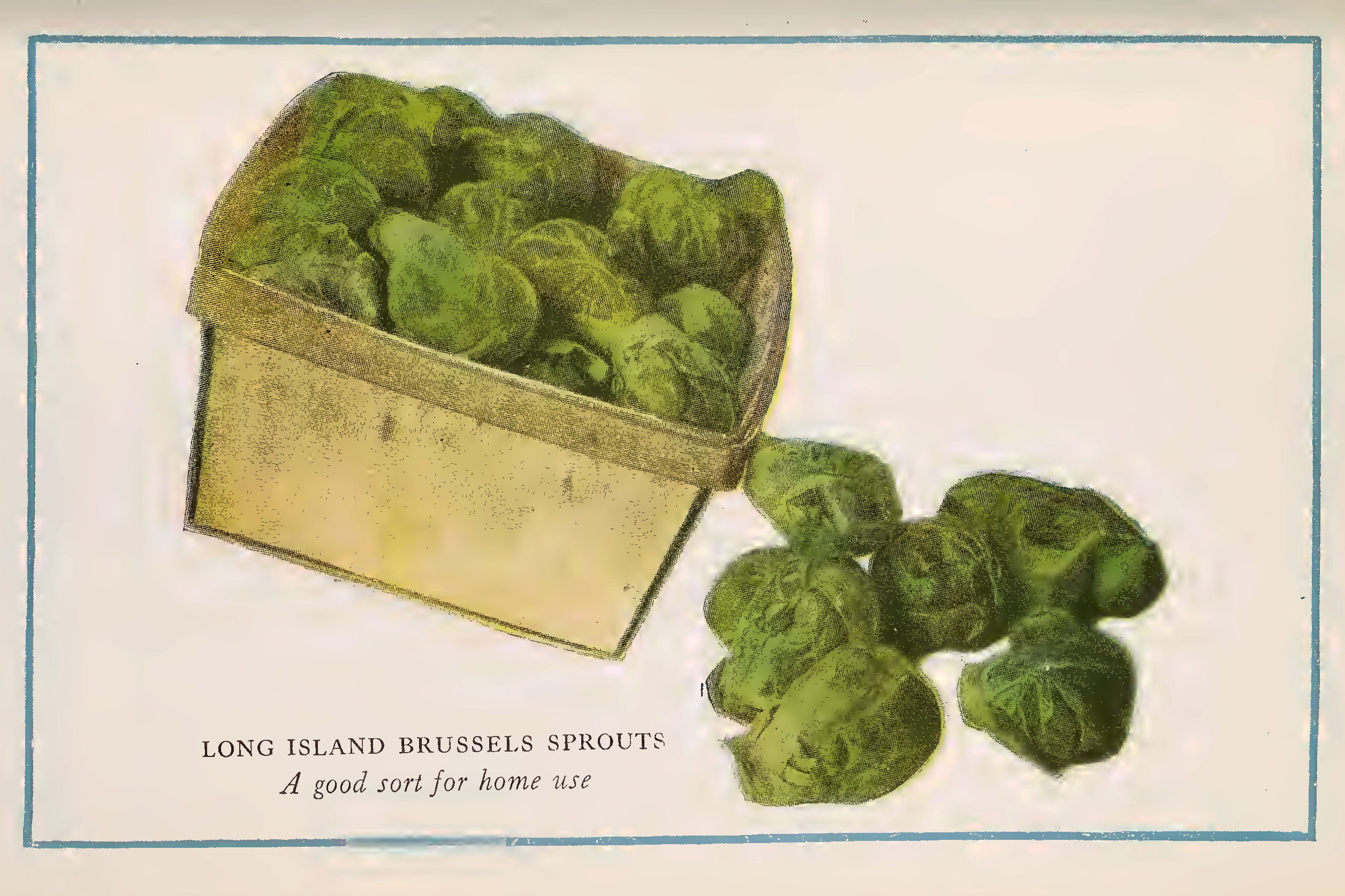 “One of the least known members of the cabbage family and one of the most delicate and delicious in flavor. Can you imagine a cabbage plant which, instead of forming a head, grows a stalk about two feet tall, with the leaves set about two to three inches apart all around and up the stem? That is the way this vegetable grows and the “sprouts” develop where the leaves join the stalks.”