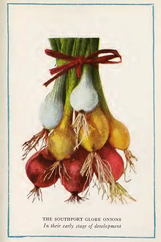 “Onions as food for mankind can trace their usefulness back to the dawn of civilization. History re- cords that laborers fed on bread and onions erected the Pyramids for the Pharaohs 4200 B. C. To this day onions are an important article of diet.