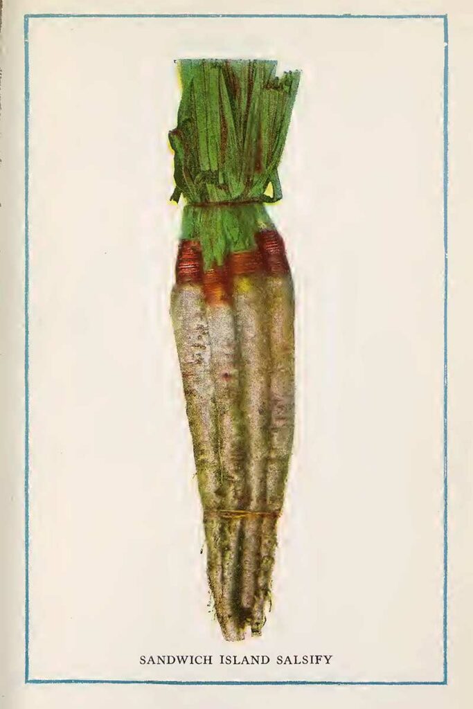 “As one of the most dependable and most easily grown winter vegetables, salsify deserves to be grown more generally than it now is. The natives of Mediterranean countries have known and esteemed salsify for centuries as a voluntary gift of nature, since it is found growing wild in Italy, Greece, etc.