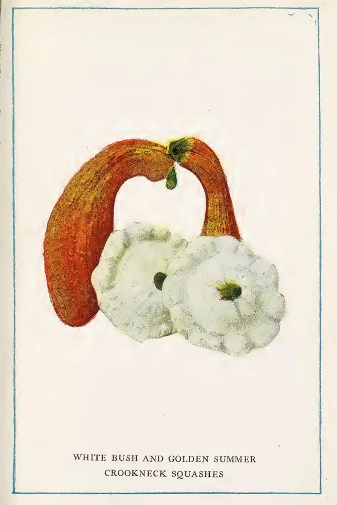 “Two distinct types of squash claim the home gardener’s attention — the dwarf or bush form and the very much larger and later “running” or vining varieties.