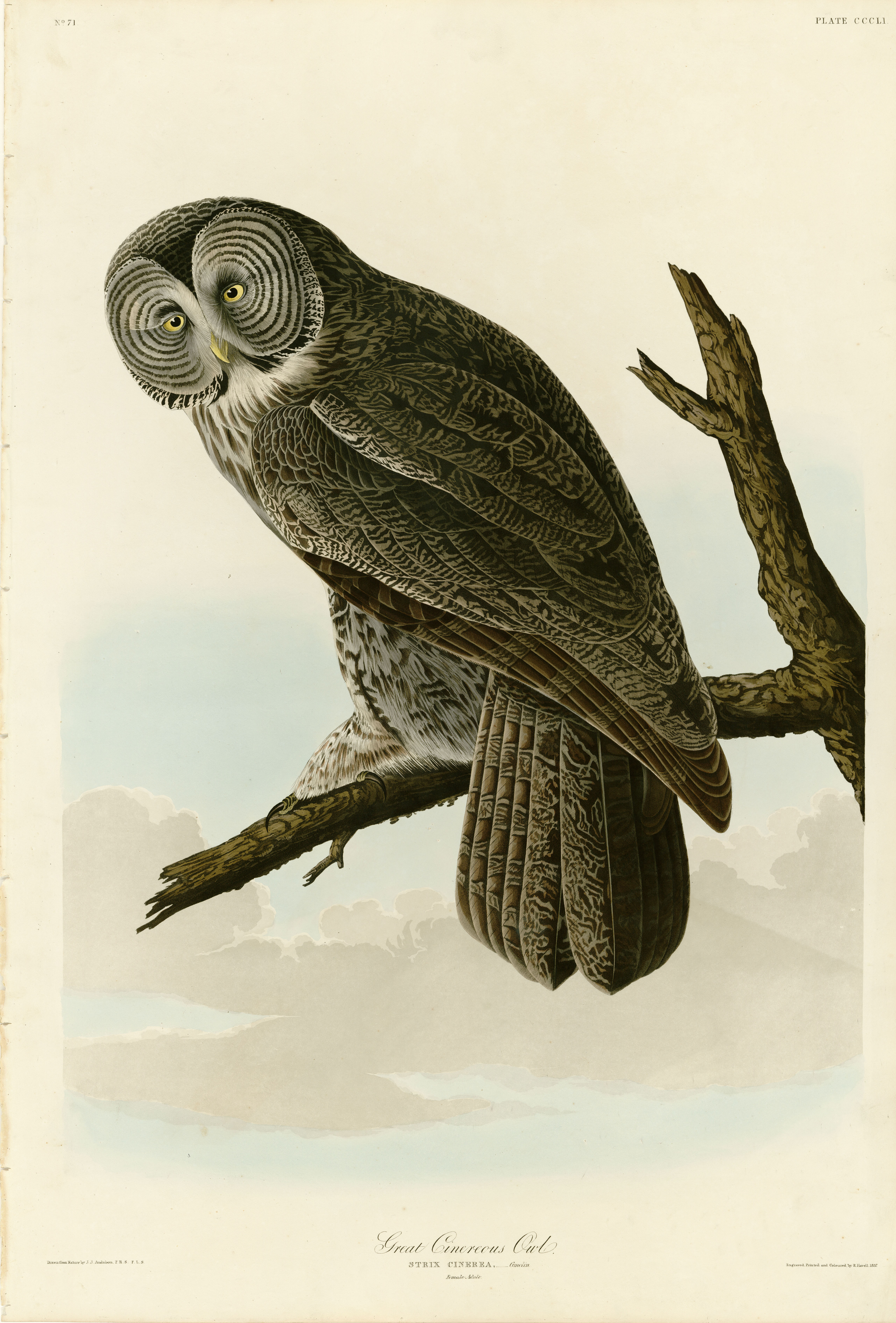 No collection of vintage woodland animal illustrations is complete without a wise grey owl. This print is from the famous Birds of America by John James Audubon.