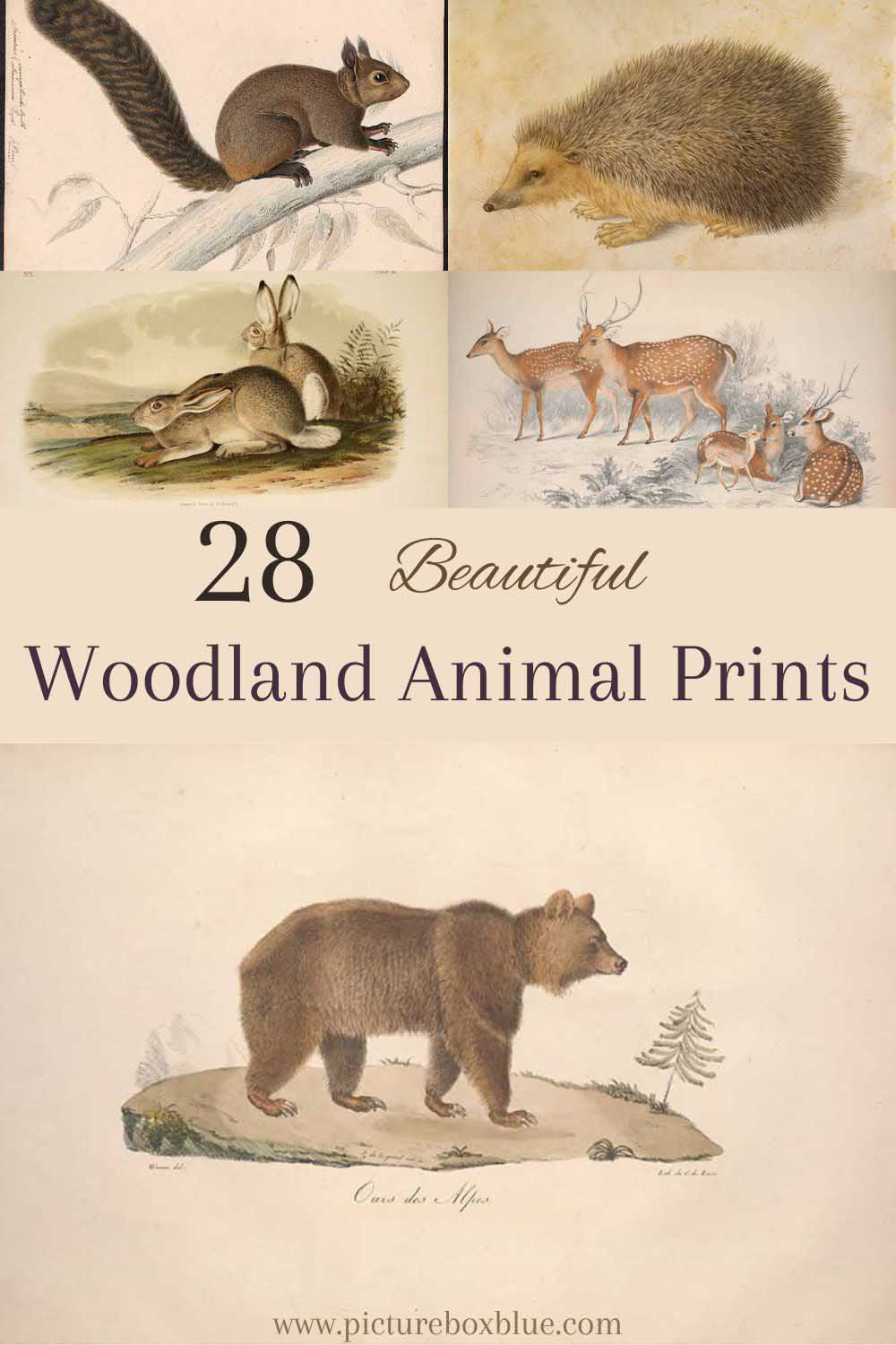 The woodland animal print is from the book “The Deer of all Lands” by Lydekker, Richard (1898).