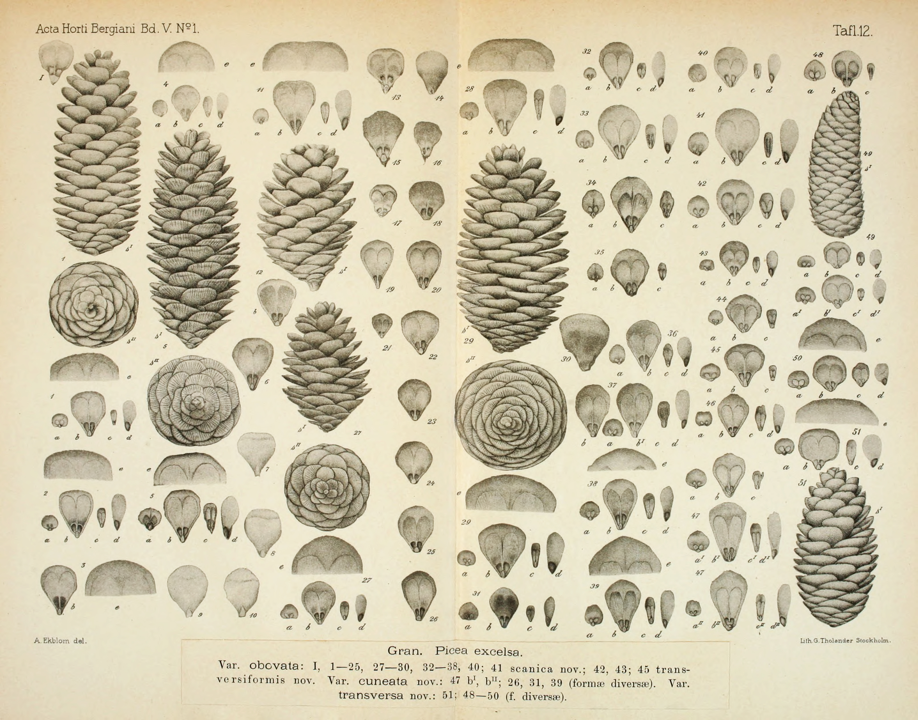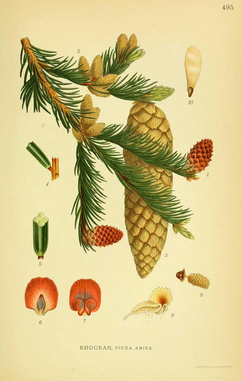 There are lots of different types of conifer/pine trees. These pine cones are often collected and used for home decorations and wreaths. There are hundreds of arts and crafts on Pinterest using pine cones. They also make for great vintage botanical prints.