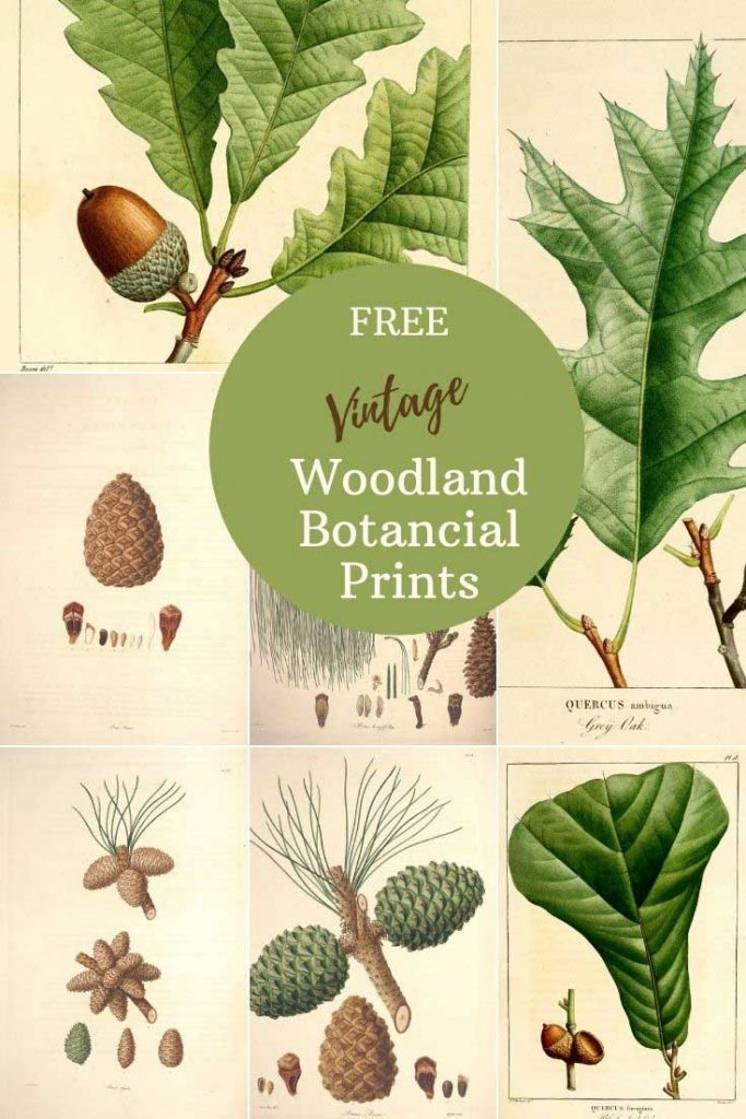 Free printable woodland botanical art with vintage charm. Features trees, leaves, cones, and acorns—perfect for botanical artists and forest-themed DIYs.