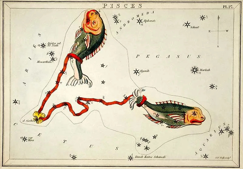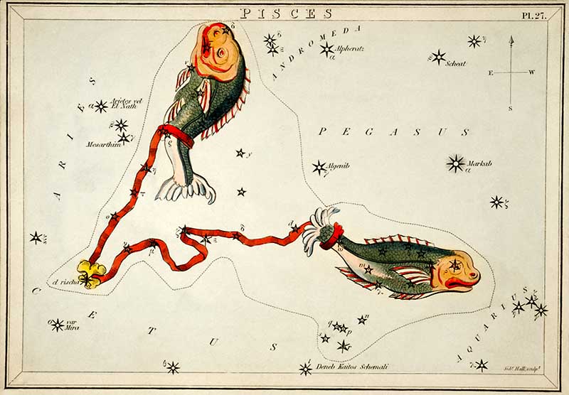 Under the tropical zodiac, the Sun transits the area of Pisces between February 19 and March 20. Two fish represent Pisces and are a water sign. It is one of the earliest zodiac signs on record, and “Pisces” is the Latin word for “Fish.”