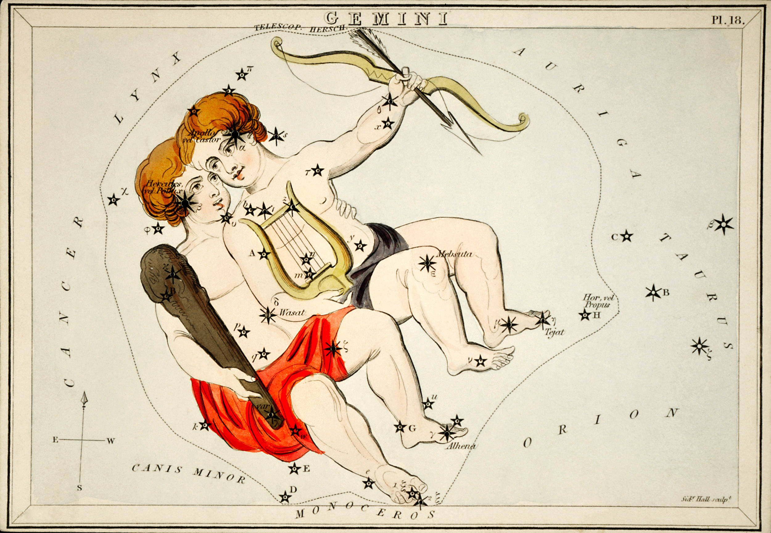 Under the tropical zodiac, the Sun transits the Gemini sign between May 21 and June 21. Gemini is an air sign represented by the Greek mythology twins Castor and Pollux, known as the Dioscuri.
