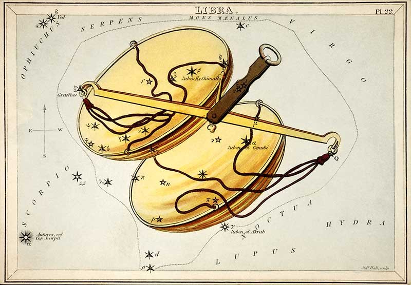 Under the tropical zodiac, the Sun transits the Libra zodiac area on average between September 23 and October 22. Libra is an air sign symbolised by a set of scales and is associated with justice. According to the writer Manilius, Roman judges are born under the sign of Libra.