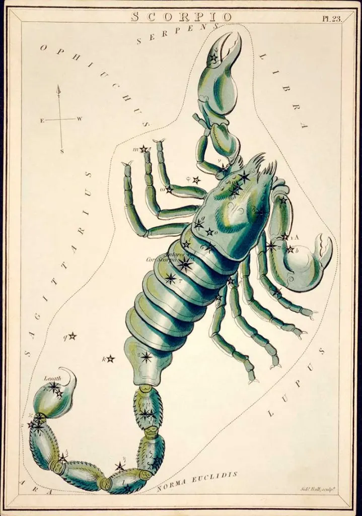 The Sun transits Scorpio on average from October 23 to November 22. Scorpio is a water sign associated with three different animals: the scorpion, the snake, and the eagle (or phoenix).